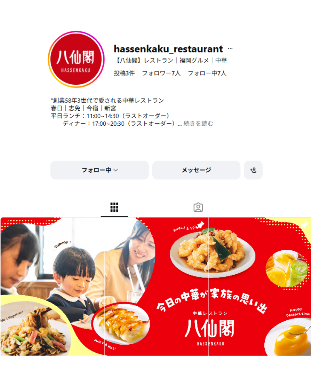 中華料理八仙閣レストランの公式Instagramアカウントを開設いたしました。